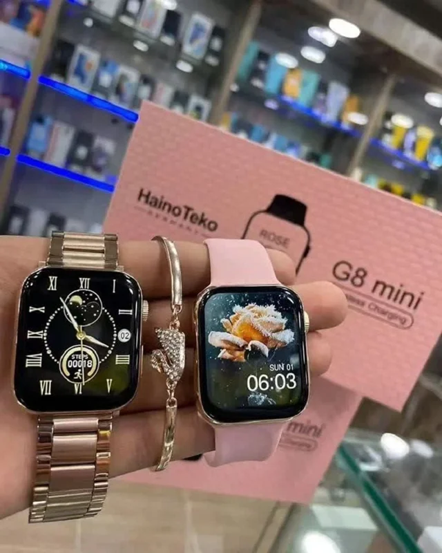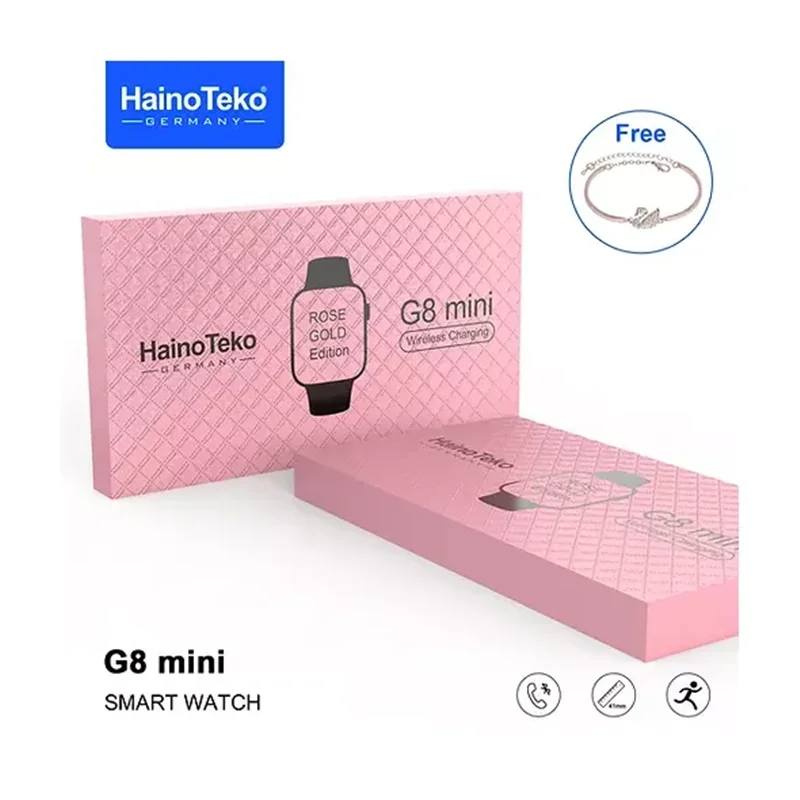 ک ساعت با دو رنگ طلایی و رزگلد می تواند به عنوان ساعتی بی نظیر برای افرادی باشد که دنبال افزایش جذابیت تیپ و استایل خود هستند. دو بند در پک بسته بندی ساعت هوشمند هاینو تکو g8 mini قرار دارد که می توانید هریک را دوست دارید، به ساعت خود متصل نمایید. هاینو تکو در نظر گرفته است برای افرادی که قصد خرید این ساعت را دارند، یک هدیه داشته باشد.بنابراین زمانی که بسته بندی ساعت هاینو تکو را باز می کنید، با یک دستبند فوق العاده زیبا و جذاب روبرو خواهید شد که بی نهایت می تواند در افزایش جذابیت استایل شما مناسب باشد. پس اگر قصد خرید ساعتی هوشمند با ویژگی هایی که برای شما بازگو می نماییم، دارید، همین حالا نسبت به خرید ساعت فوق اقدامات لازم را داشته باشید.