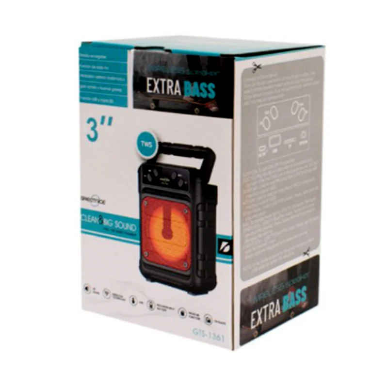 مینی اسپیکر بلوتوثی و قابل حمل Great Nice مدل GTS-1361 کوچک و حمع وجور به همراه یک دسته نگه دارنده طراحی شبیه به بلندگو های چمدانی ولی در ابعاد کوچک و بسیار فانتزی با کیفیت عالی و قابلیت صدای شگفت انگیز مناسب برای تفریحات و مهمانی های کوچک و دورهمی ها خودمانی است.