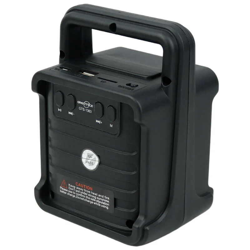اسپیکر با امکان اتصال بی سیم از طریق بلوتوث داخلی با برد حدود ۱۰ متر، مجهز به نور پردازی داخلیتامین انرژی اسپیکر gts-1363 از طریق باتری لیتیومی با ظرفیت ۵۰۰ میلی آمپر ساعت و امکان شارژ مجدد از طریق کابل میکرو یو اس بیمجهز به درایو ۳ اینچی با توان خروجی ۵ وات جهت پخش صدای شفاف و واضح، دارای استاندارد های FCC /CEدارای دسته جهت حمل آسان تر، بهرمند از کلید های فیزیکی جهت مدیریت موسیقی، روشن و خاموش کردن و …پشتیبانی از فلش مموری و رم میکرو SD برای پخش موسیقی و رادیو FM برای علاقمندن به برنامه های رادیوییحداکثر حافظه قابل پشتیبانی تا ۳۲ گیگابایت و پاسخ فرکانسی ۱۰۰ الی ۲۰ کیلو هرتز