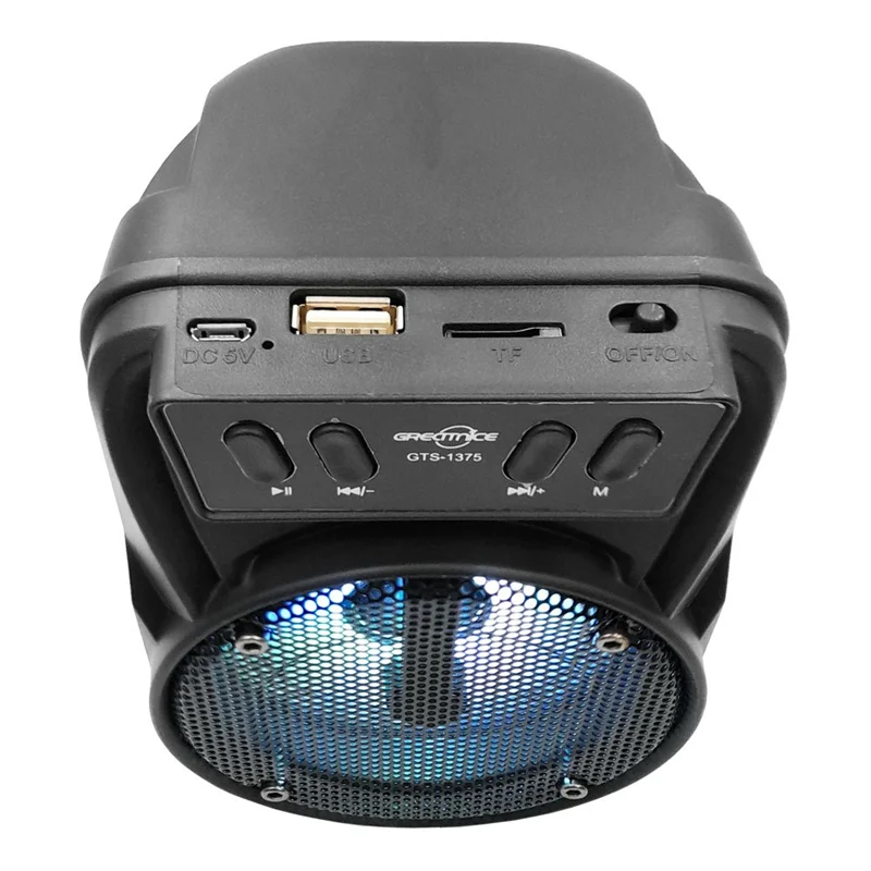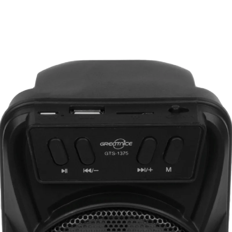 کمپانی گریت نایس یکی از کمپانی های شناخته شده در عرصه تولید انواع اسپیکرهای با کیفیت با قیمت مناسب می باشد. اسپیکر گریت نایس مدل GTS-1375 یکی از از اسپیکرهای با اندازه کوچک که دارای کیفیت مناسب با توجه به اندازه آن می باشد. یکی از مزیت های اسپیکرهای تولیدی این کمپانی قیمت بسیار مناسب تولیدات آن در مقایسه با کمپانی های دیگر سازنده اسپیکر می باشد. اسپیکر گریت نایس مدل GTS-1375 نیز از همین دسته از کالاهای تولیدی این کمپانی می باشد. این اسپیکر از نوع اسپیکرهای قابل حمل می باشد که دارای باتری لیتیومی قابل شارژ است که از طریق کابل همراه آن و اتصال به شارژرهای معمولی گوشی های تلفن همراه که خروجی 5 ولت دارند قابل شارژ شدن است. یکی از ویژگی های جالب این اسپیکر رقص نور جذاب آن هنگام پخش موسیقی است که جلوه ای زیبا هنگام پخش موسیقی به اسپیکر می دهد. البته لازم به ذکر است که به شما این قابلیت را نیز می دهد که بتوانید جهت نگهداری شارژ بیشتر آن را غیرفعال کنید.